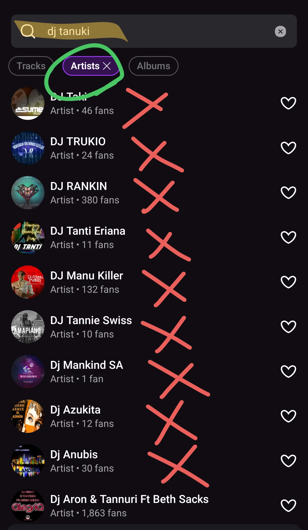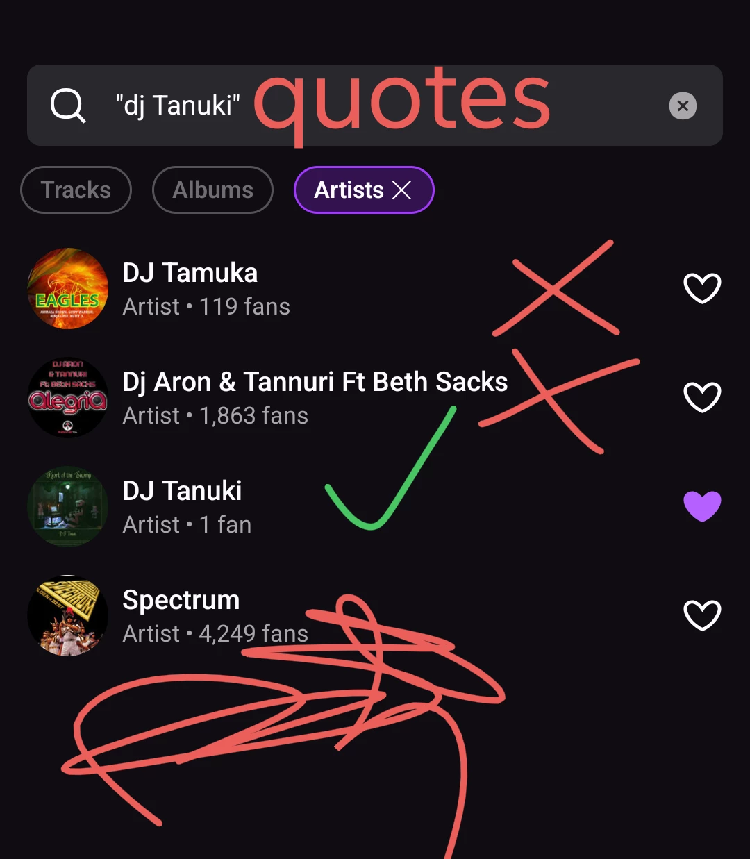 Searching "DJ Tanuki" pulls up SIXTEEN unrelated artists before the actual artist I'm looking for. You are hurting small artists.