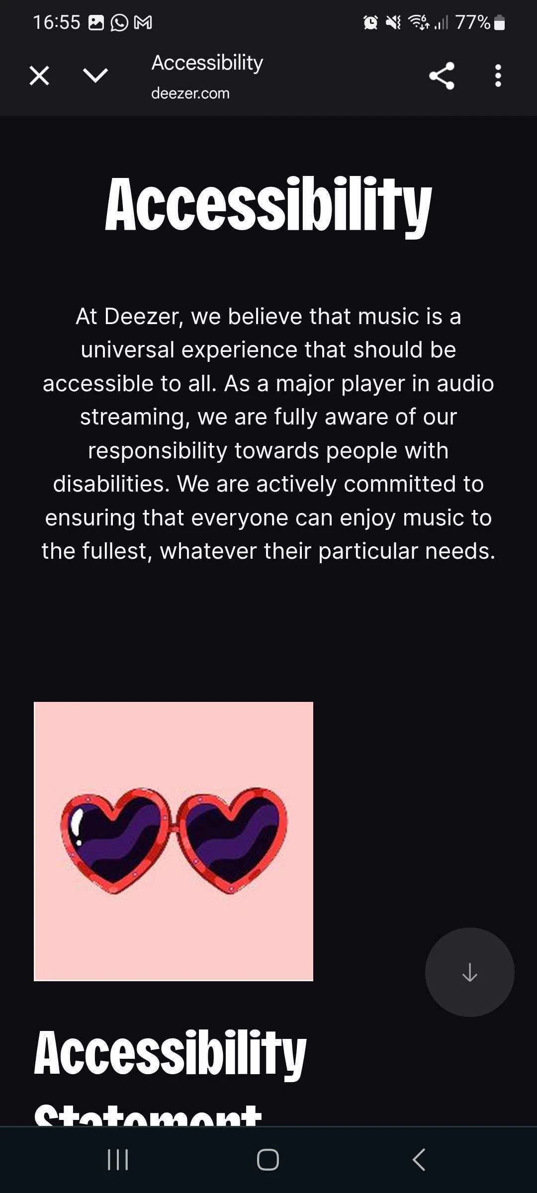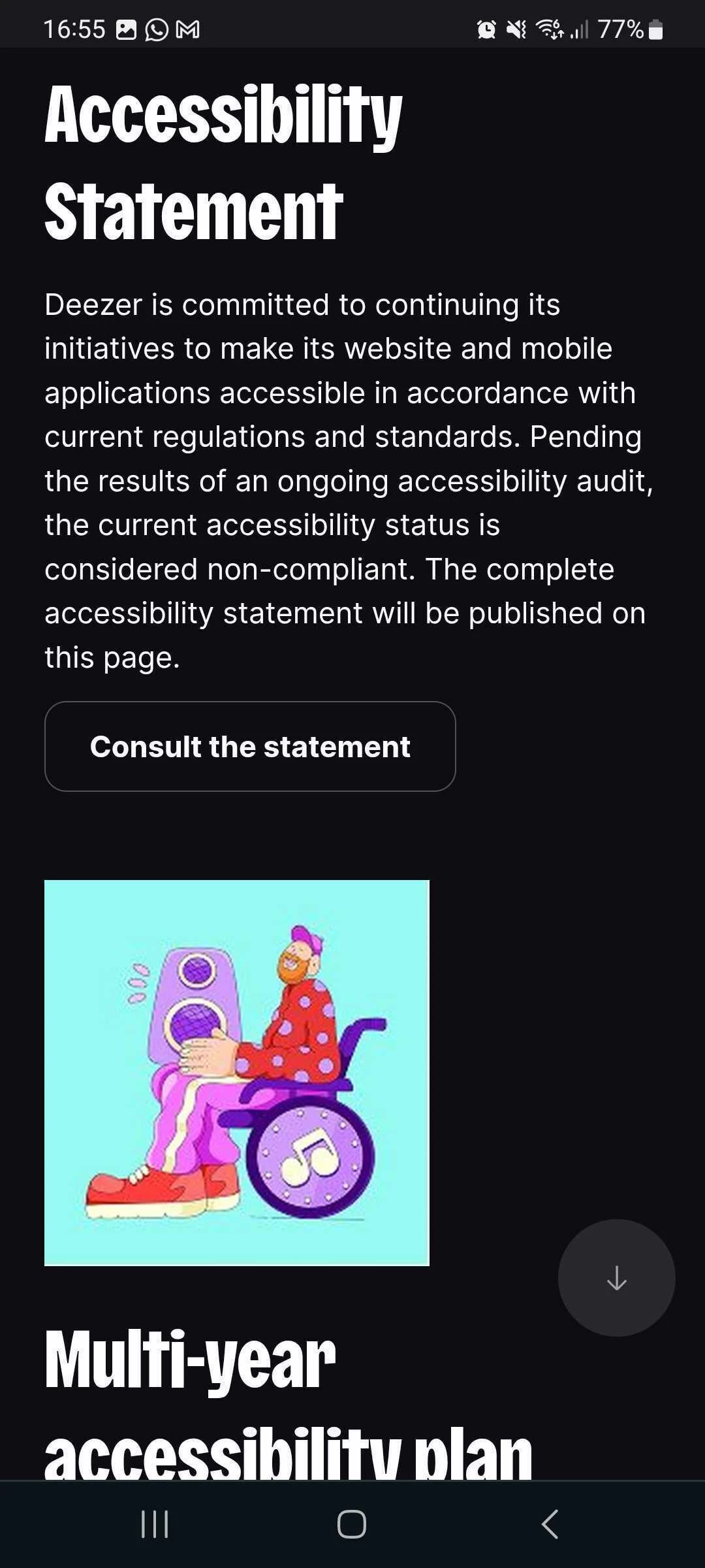 Tapping it redirects users to Deezer’s webmobile accessibility page where Deezer’s accessibility statement and multi-year accessibility plan are available.