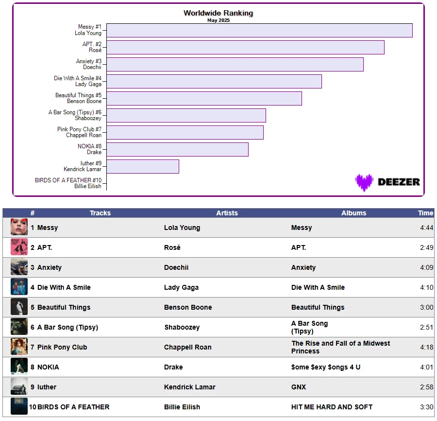 🏆 🌎 Worldwide Ranking on Deezer May 2025 📈31/05/2025