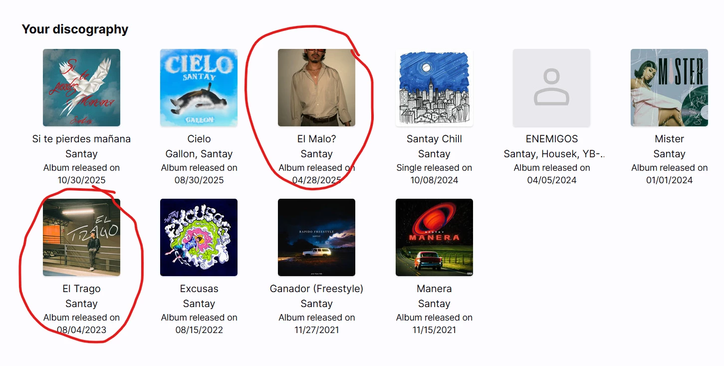 My only releases are the ones circled in red. The other songs don’t belong to me.
