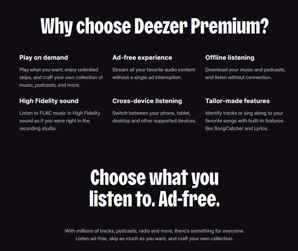 But it does make me feel a bit funny when I signed up because Deezer advertises an ad-free experience and says you can “Stream all your favorite audio content without a single ad interruption.”  while it's not something they actually have full control over across their library.