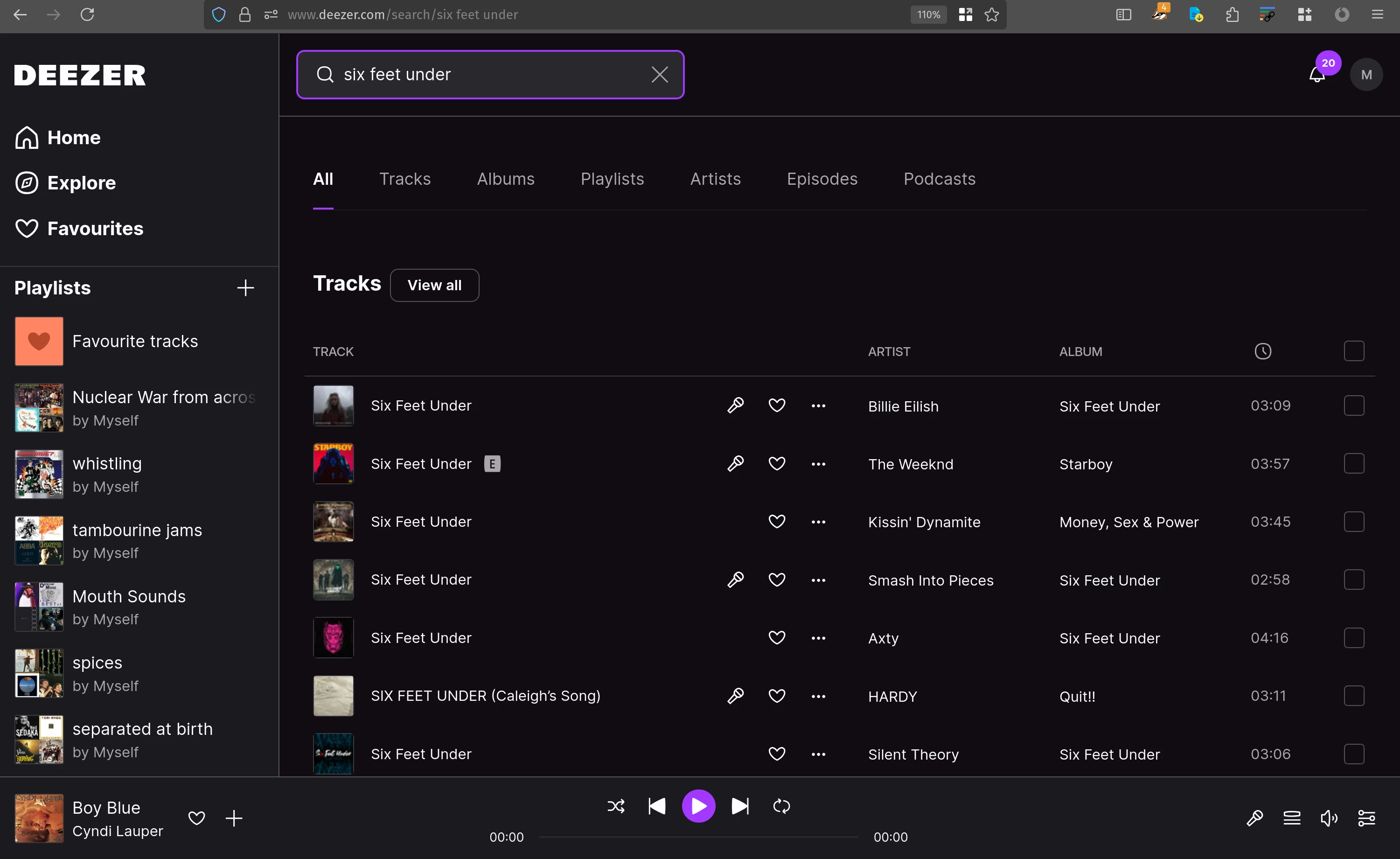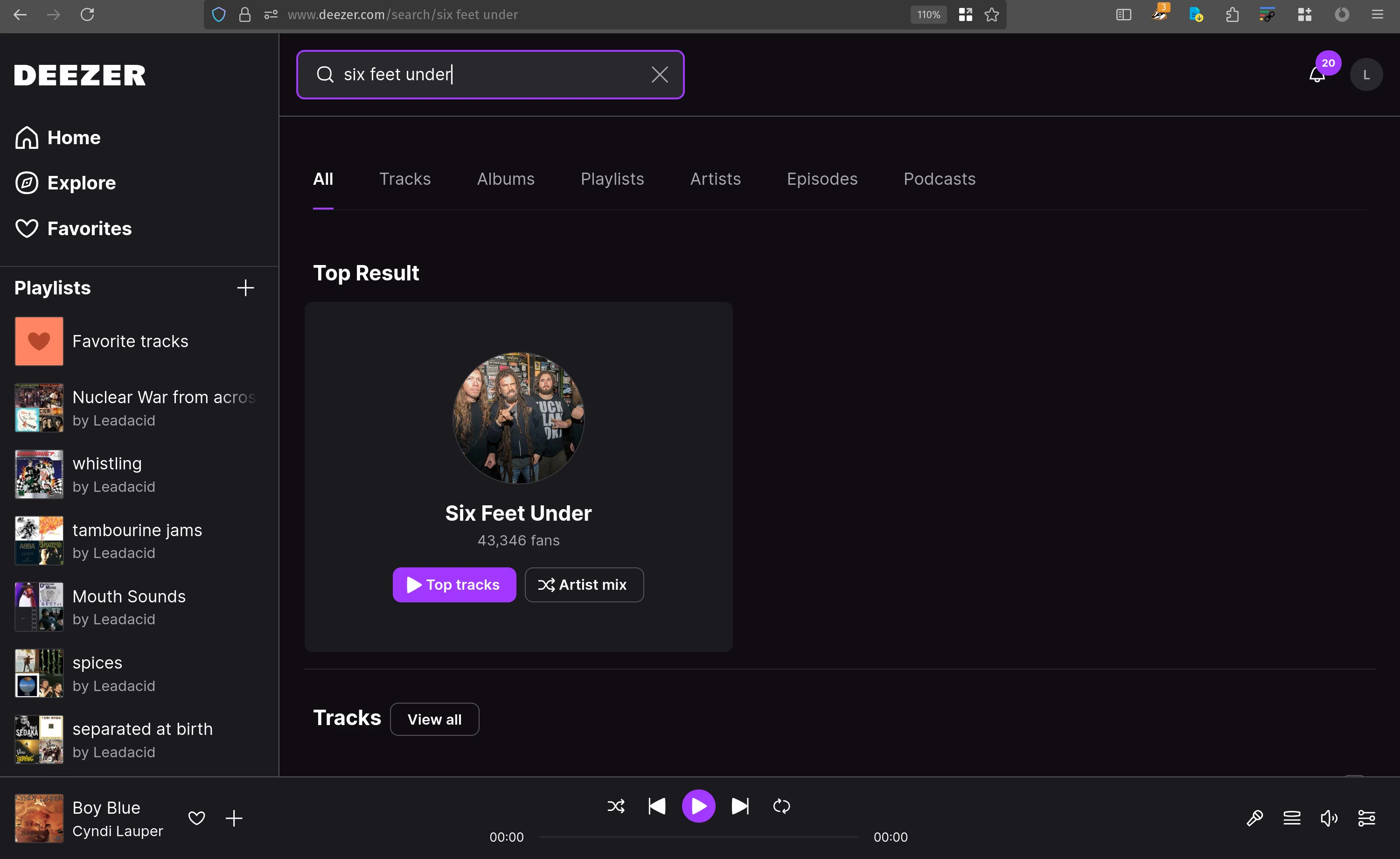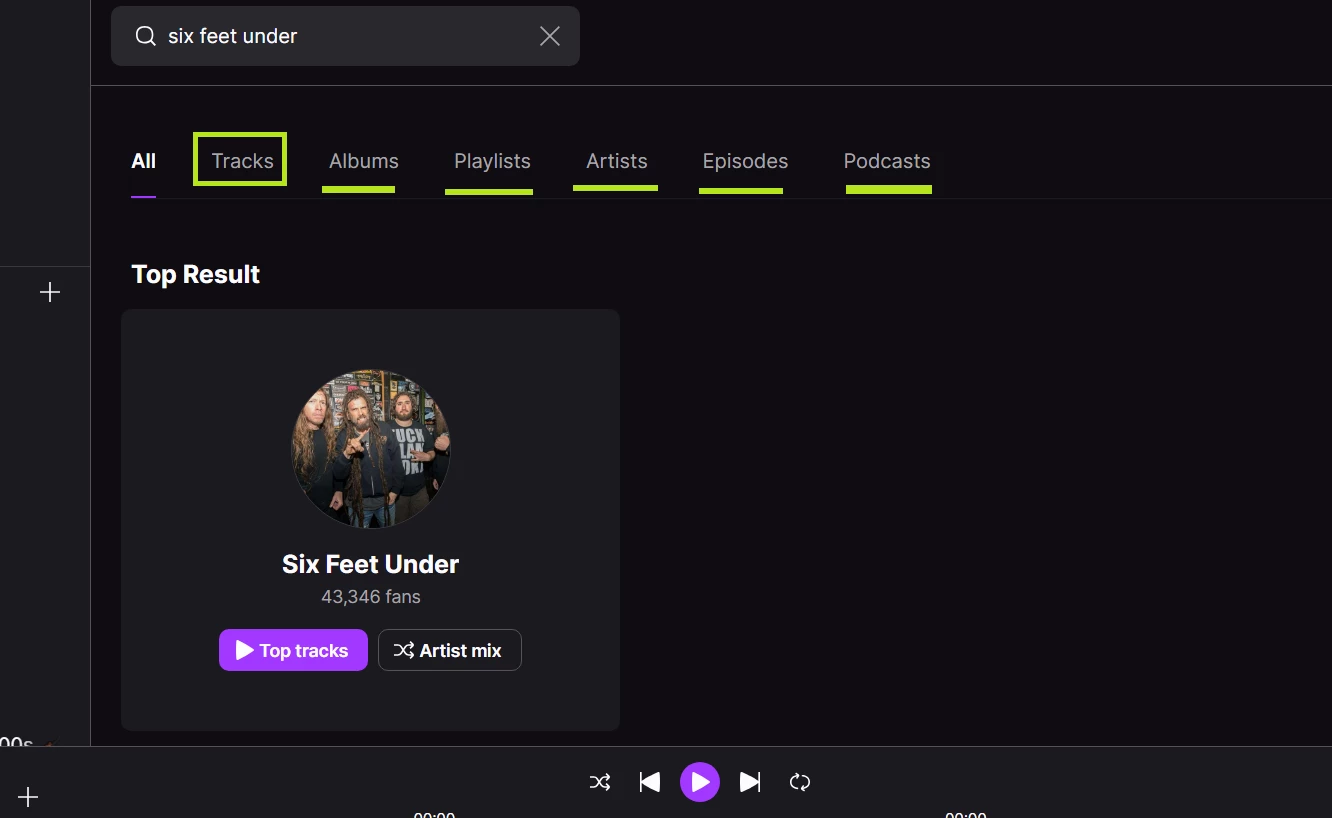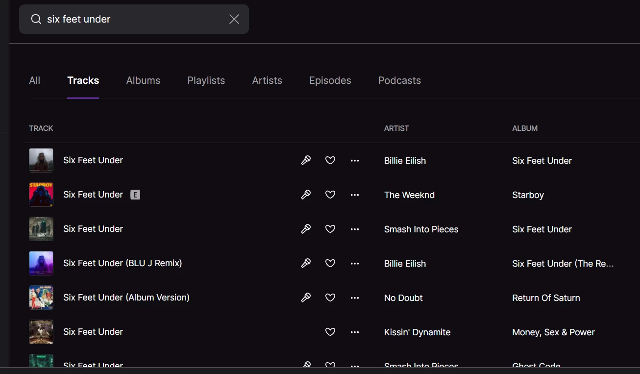 Okay, screenshot! Here’s a case where a song I was looking for shares a name with a band, and the band now takes over the entire screen and I can’t even see the Tracks section without scrolling down.
