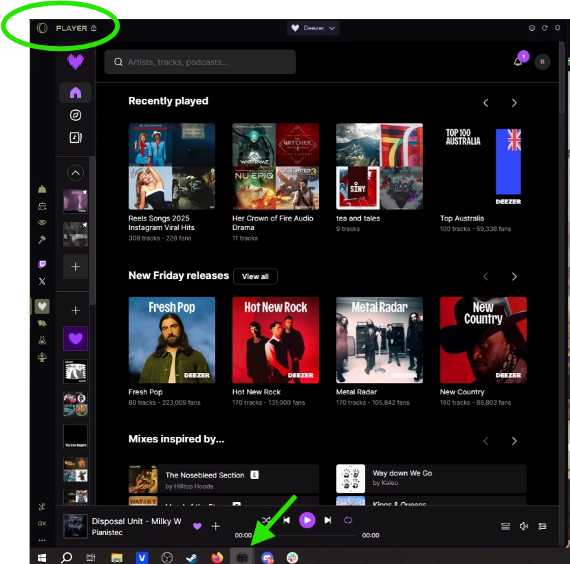 Could you please share a screenshot of the your Opera browser where you are playing Deezer?