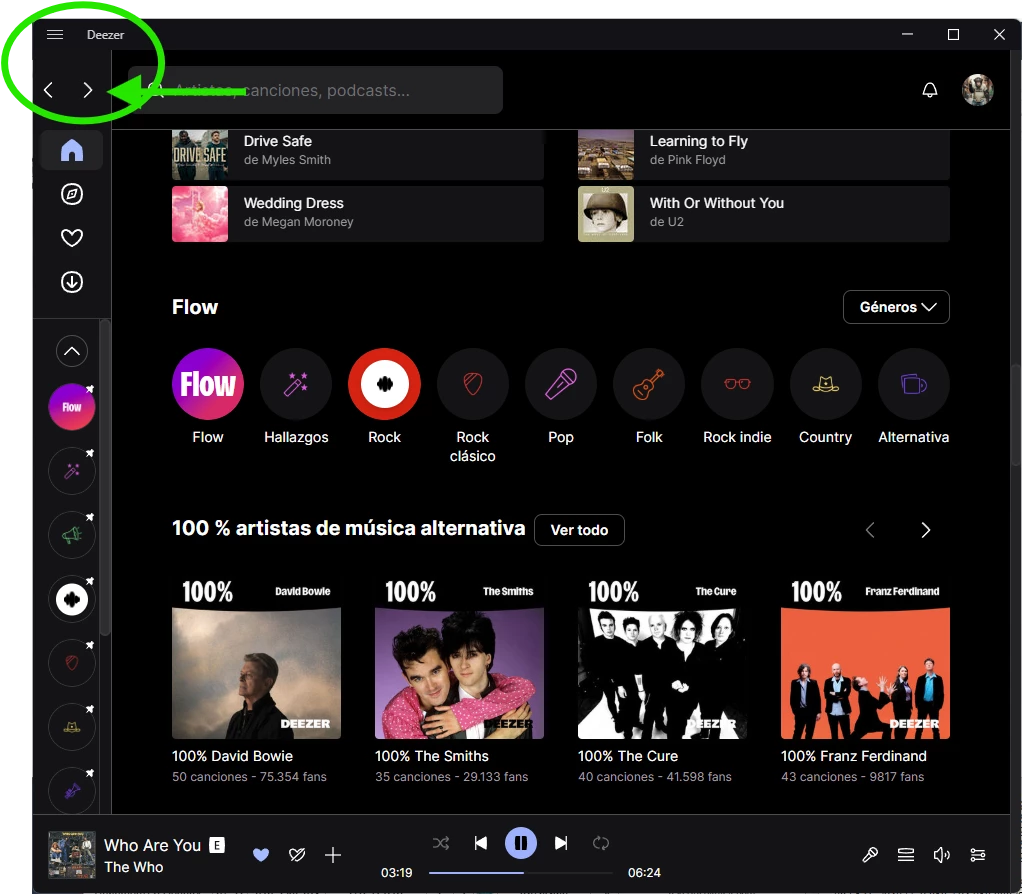 When browsing the platform on the pc app or web player in full screen mode, there is no way to go back to the previous page. Am I missing something?