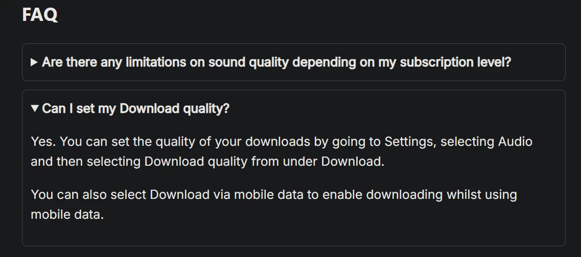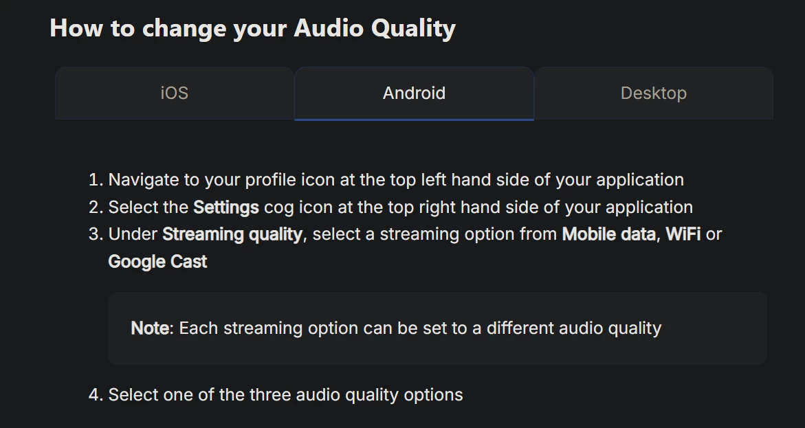 Also there is no indicator in the app to show what audio quality I am listening to.