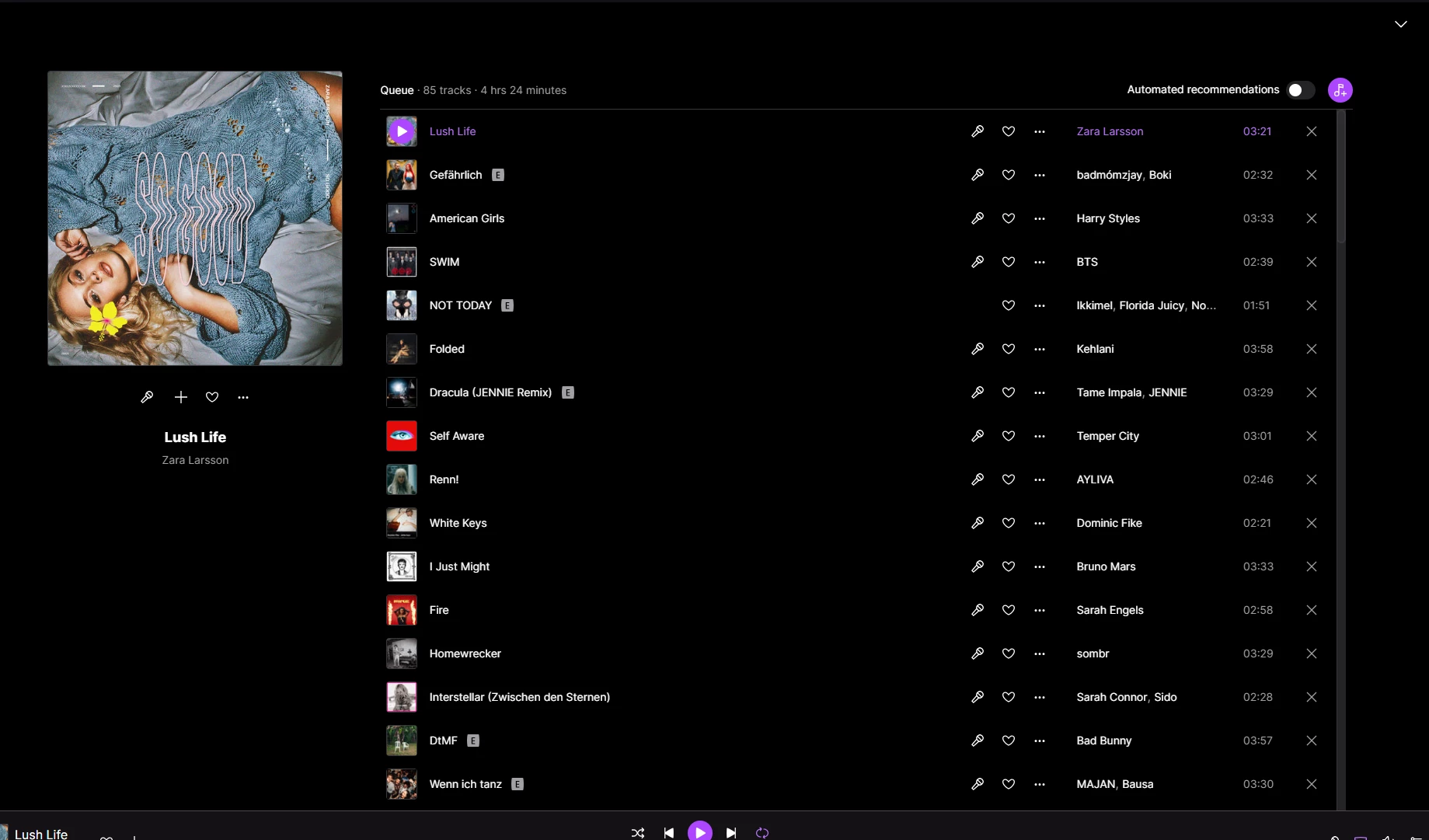 When playing the Flow, the queue represents a dynamic list based on your musical tastes.