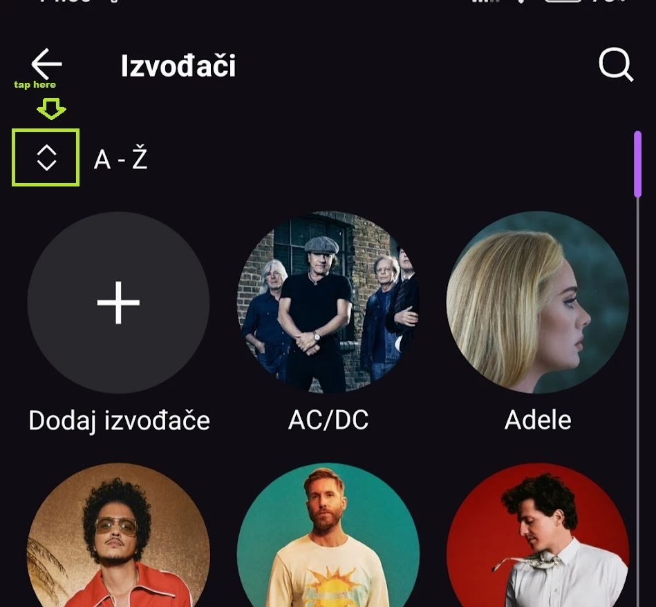 Sort A-Z by Artists and view Playlist A-Z on Android
