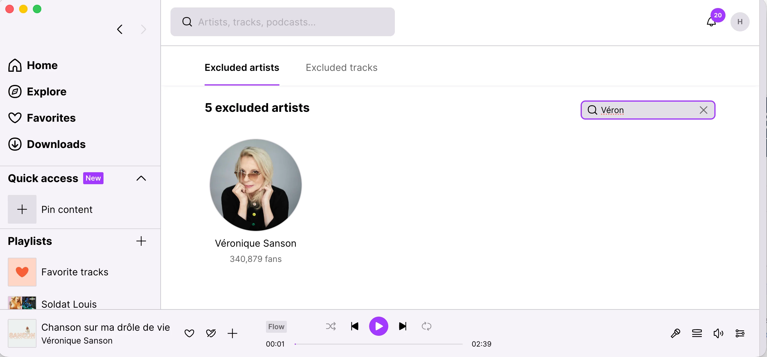 Here is the example that made me write to you yesterday. This artist is in my excluded list, yet flow proposed me one of her songs. This is not the first time it happens, but I do not have screenshots of the past occurrences. I’ll try to take more if that continues to happen.