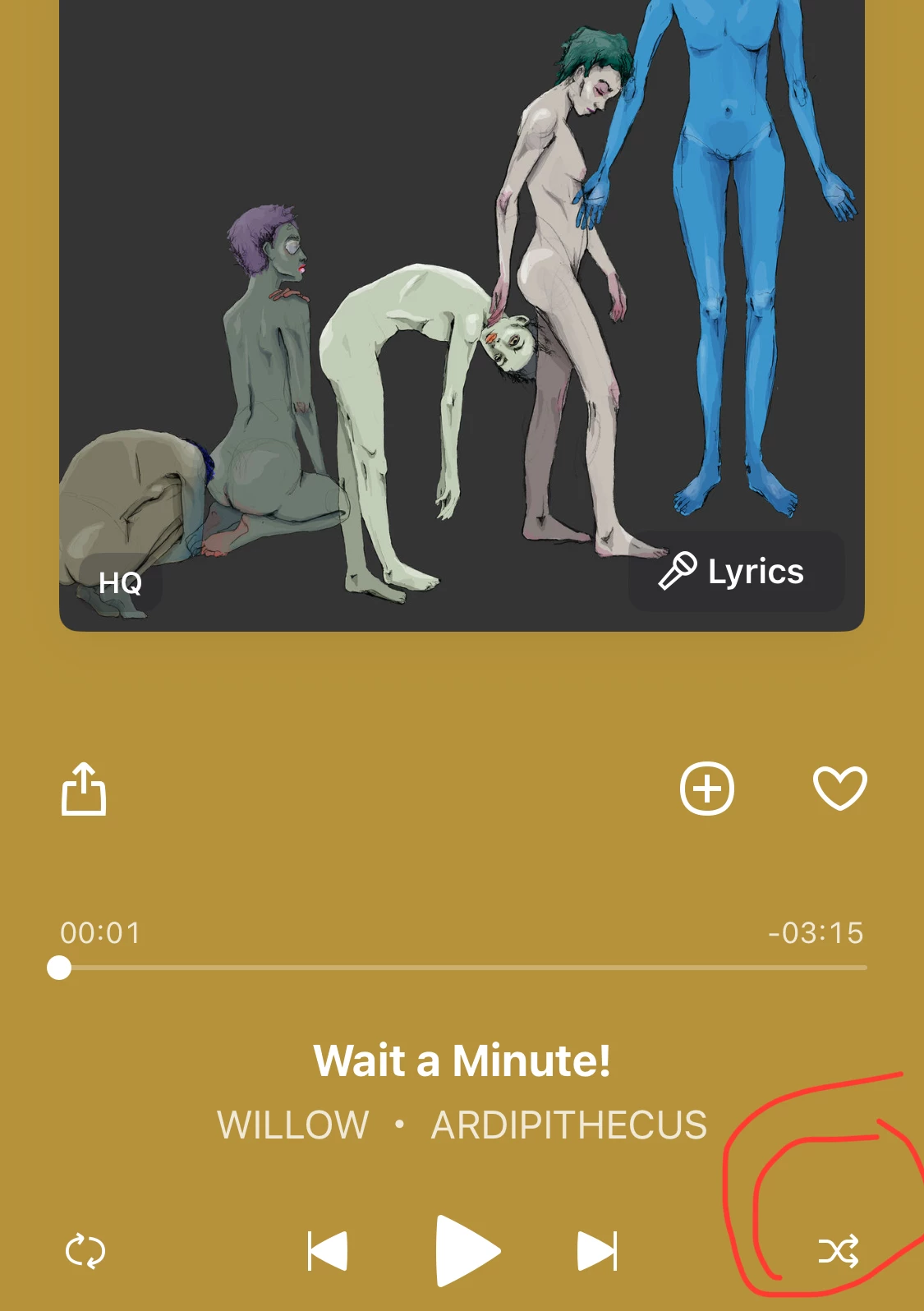 Hi ​@Nina Nebo , my issue is when I try to tap on the purple shuffle icon, it doesn’t ‘deselect’ shuffle. It only acts like a ‘play’ or ‘pause’ button instead of a shuffle button.
