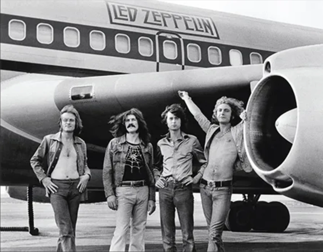 AD_4nXcbVekUWJytQ0q_DeGgt53UhMlzybNC3Zh8bjbWfn8U4zxPfEK9zkGoPF4fcu_G7pl4Q_QNXBMCg14olLxHj6v_Zi0mRRf_XB_Nz88bmYdDJtA85iwN9uEZCCB6Lr2AZDV9G9tFdw?key=uaqJfbFvt90VGRPt41O11QThe image of Led Zeppelin standing before their private Boeing 720 jet, “The Starship,” encapsulates the extravagance and charisma of 1970s rock stardom.