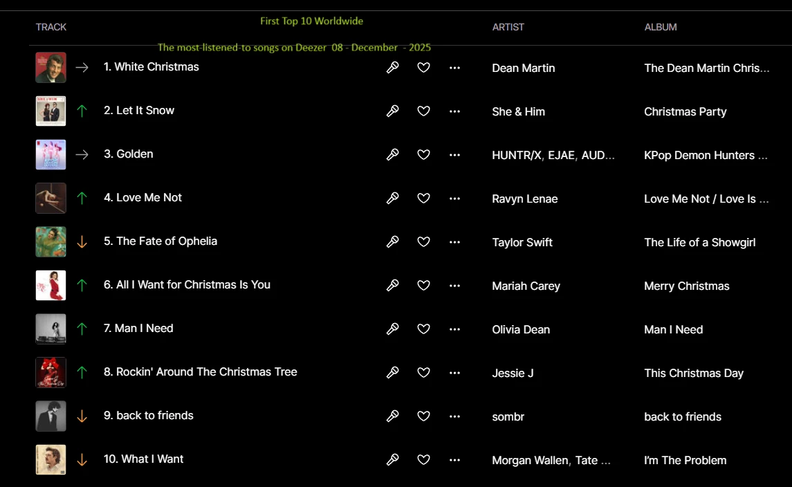 The most-listened-to songs on Deezer  08 - December  - 2025