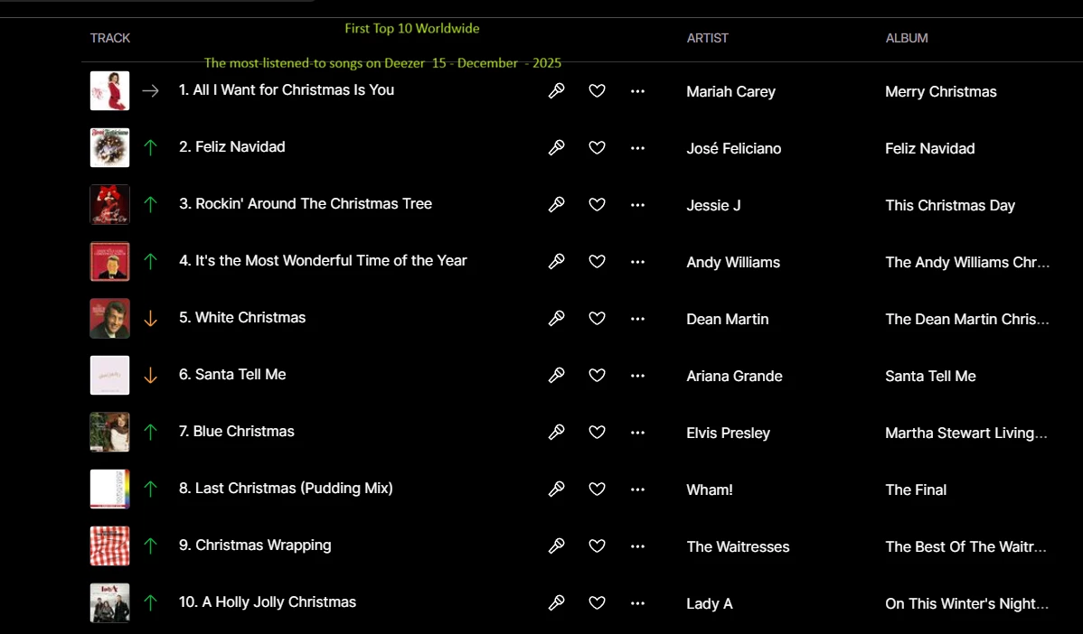 The most-listened-to songs on Deezer  15 - December  - 2025