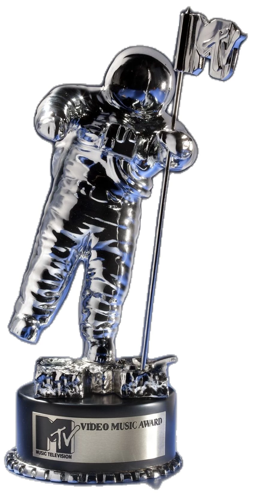 The statue given to winners is an astronaut on the Moon, one of the earliest representations of MTV, and was colloquially called a "moonman", though it has been called a "moon person" by MTV since the 2017 ceremony. The statue was conceived by Manhattan Design, who were also designers of the original MTV logo, based on the 1981 Top of the Hour animation created by Fred Seibert .