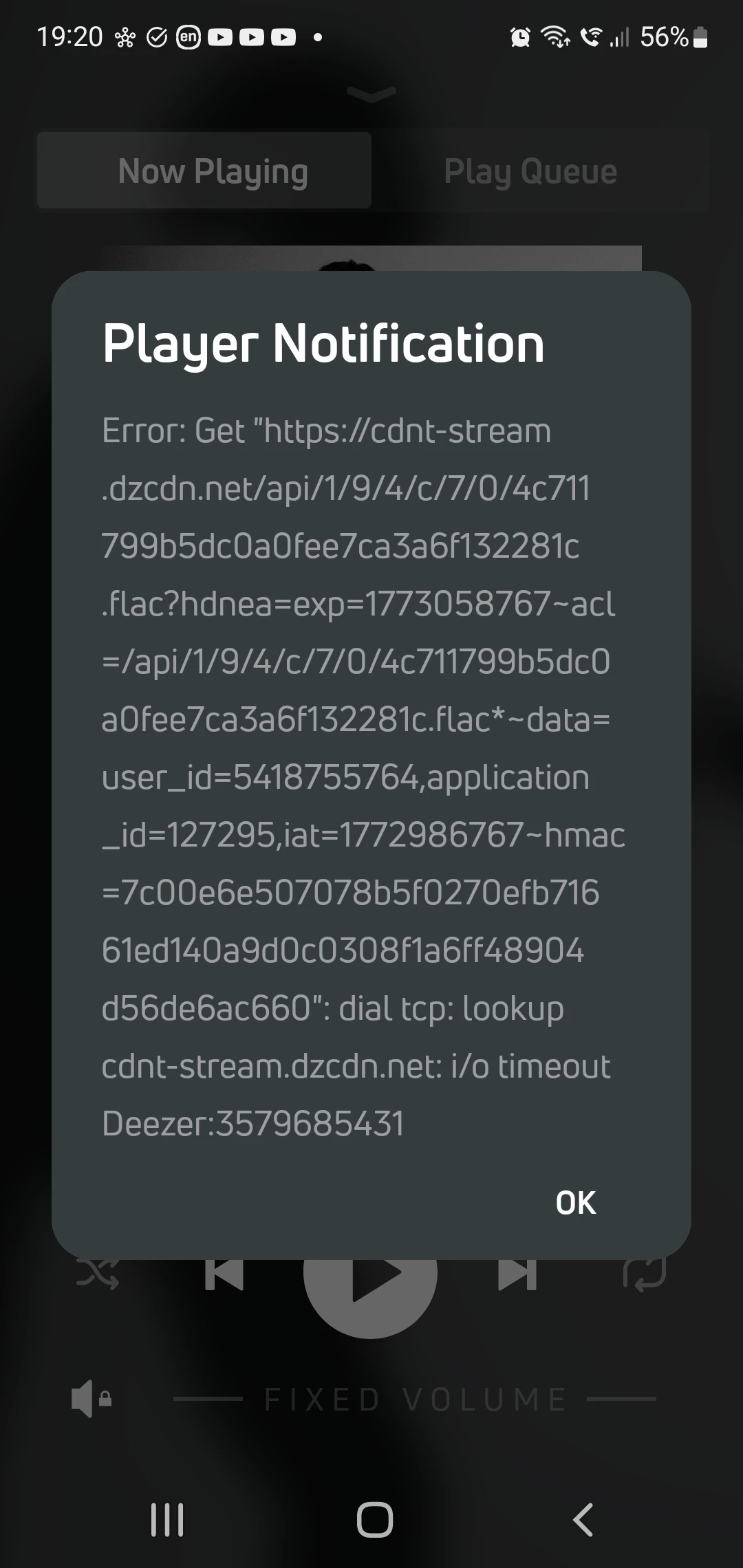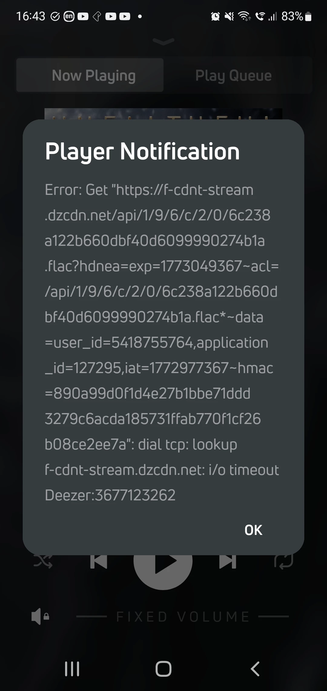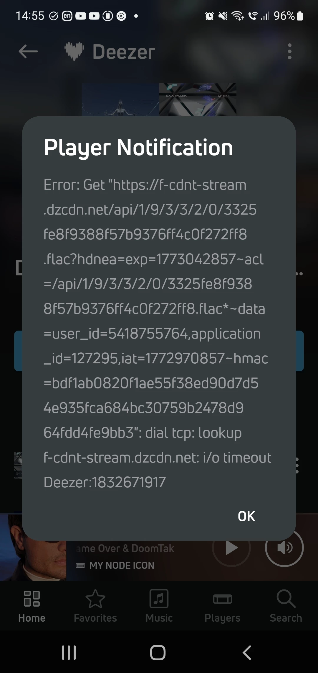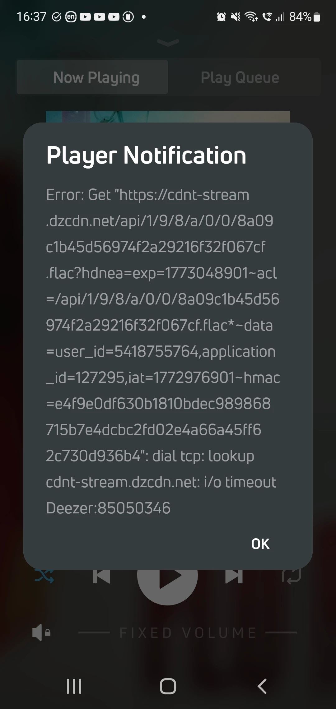 Yes, I get these error messages on BluOS app frequently. There is no error playing Radioparadise for example. Deezer is the culprit.