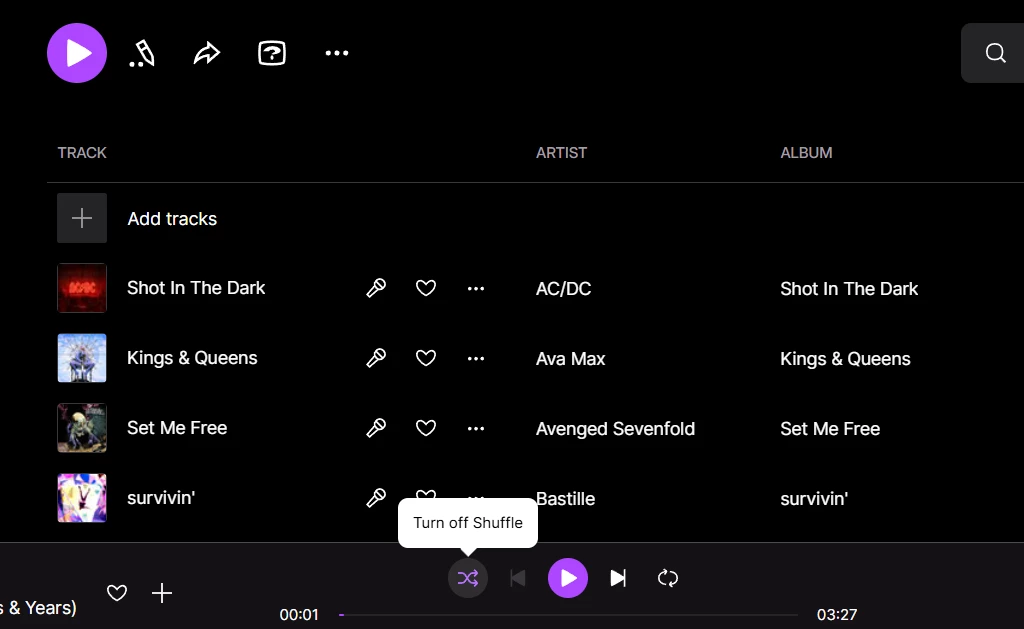 Even if I play a playlist from the first track in the list I cannot turn off shuffle. How can I turn it off?