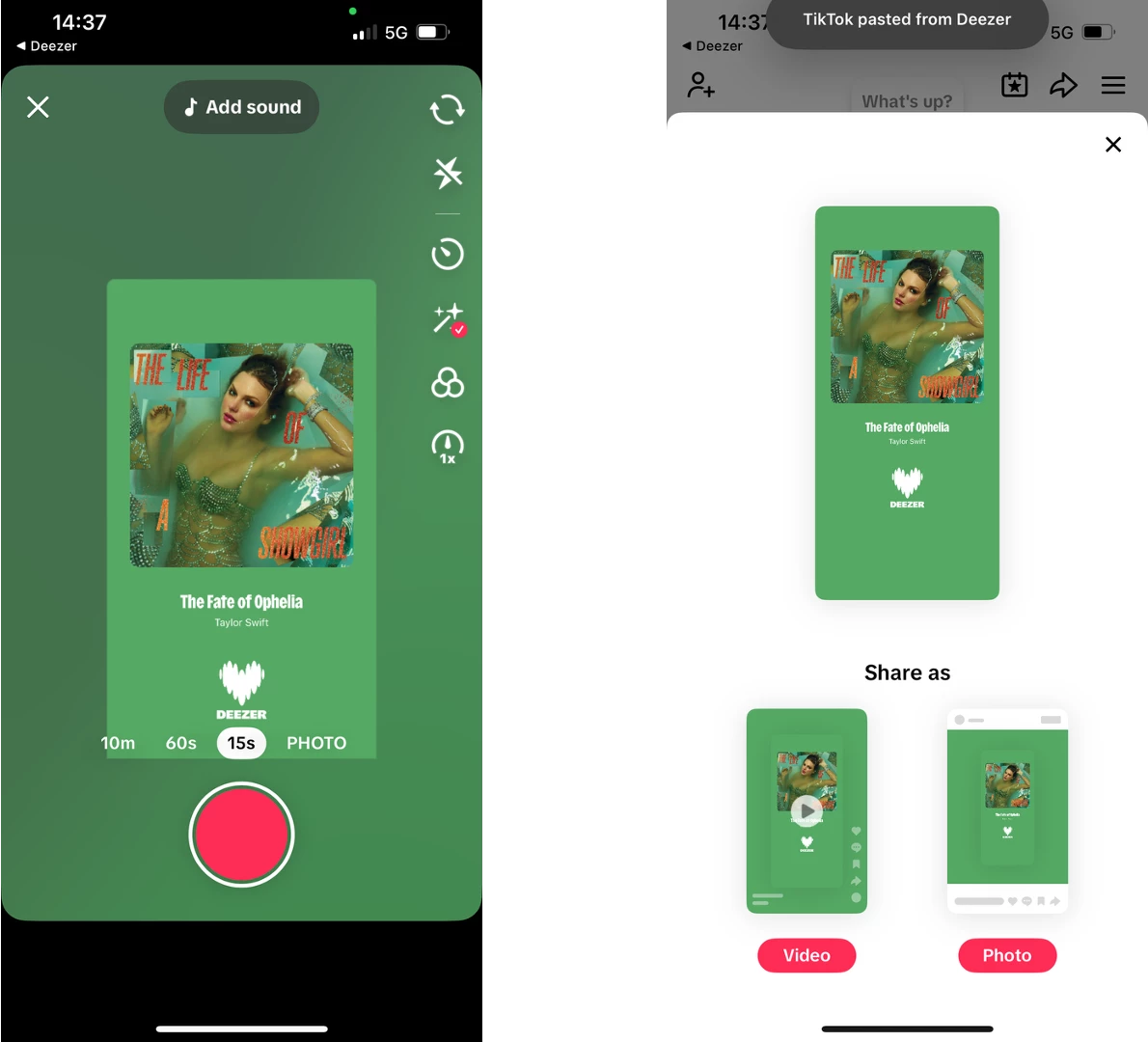 After Deezer users could save tracks discovered while scrolling through TikTok, they can now do the opposite: share what they’re listening to on Deezer directly to their TikTok profile.