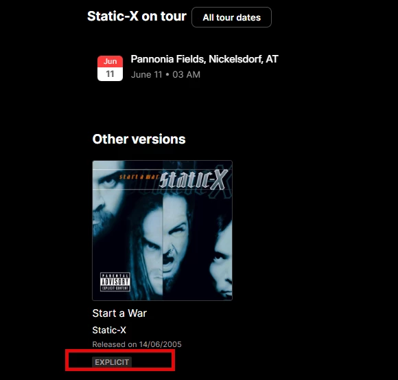 I've been listening to Static-X, album Start a War, and all songs in it is cleaned. All the explicit words are just blanks. Why? Make a filter if it is done for people under 18. You can't listen to this album cleaned!!!!